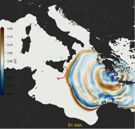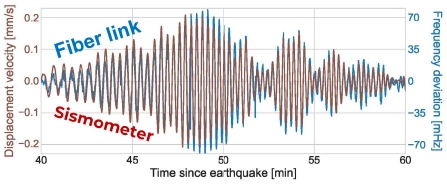Impact on a submarine optical fibre between Sicilia and Malta island of an earthquake in Greece (courtesy of INGV). Optical fibres are dense on land and extend to remote areas; when equipped with sensing abilities, they become valuable tools for environmental monitoring and hazard detection.